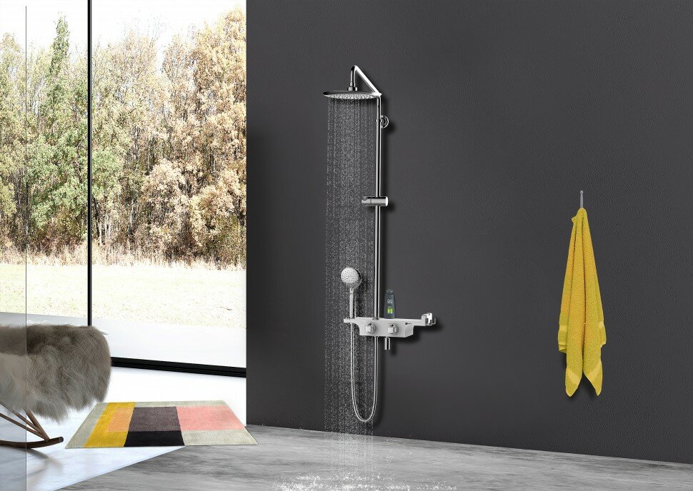 | Комплектация | ручной душ / верхний душ / смеситель / стойка / штанга / душевой шланг / крепление ручного душа / полка (в виде верхней части смесителя) |