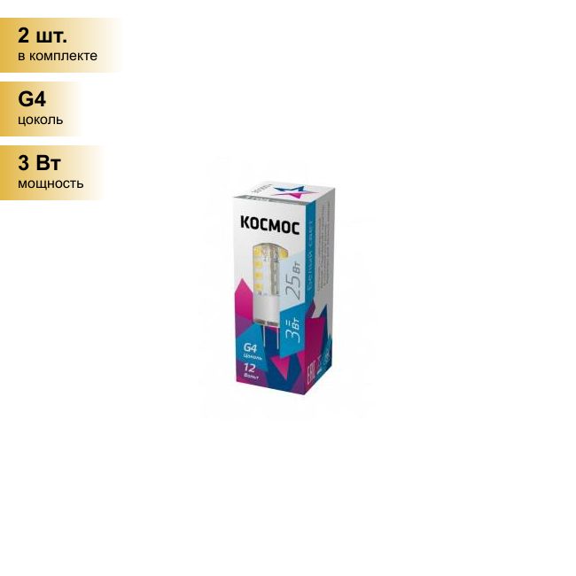Лампочки (2 шт.) Светодиодная лампочка Космос G4 12V 3W(180lm) 4500K 4K 43x15 LksmLED3wJCG412v45 . Цоколь G4
