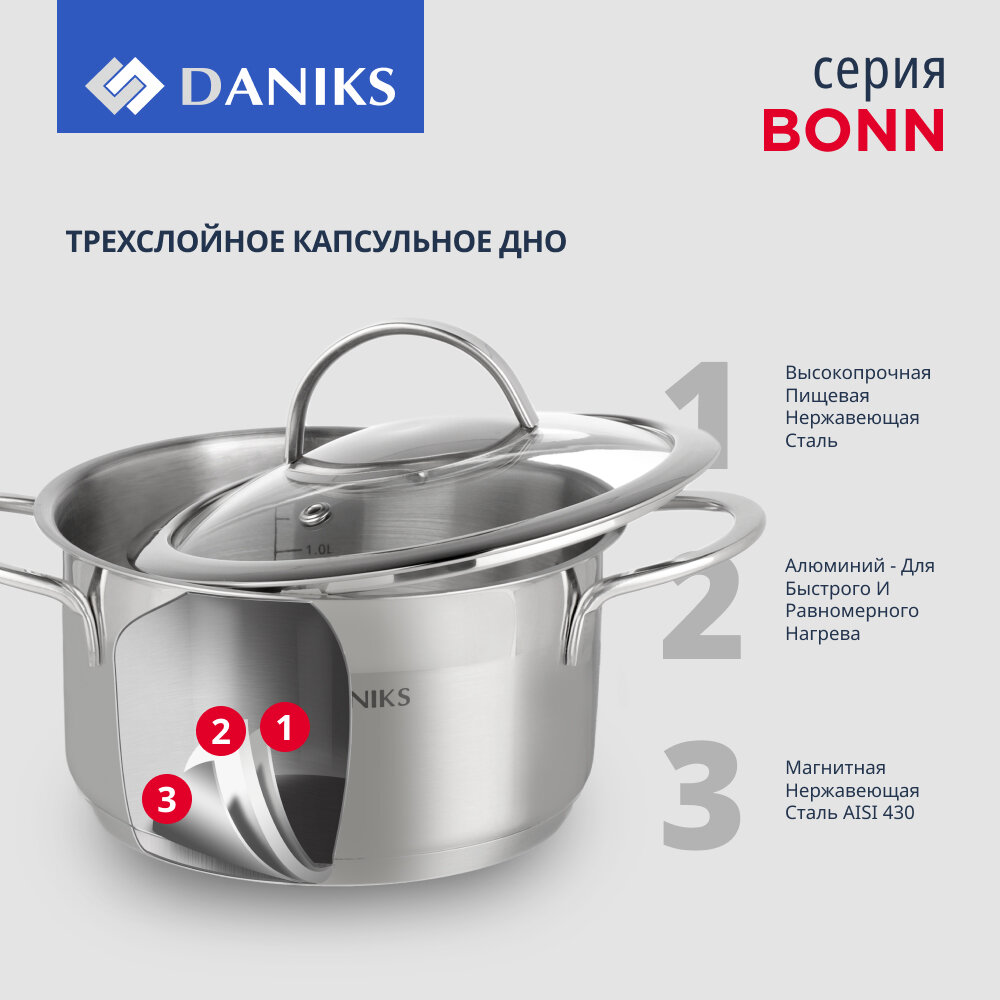 Кастрюля с крышкой Daniks Бонн, нержавеющая сталь, 1,8 л 2 138 ₽ Подробнее