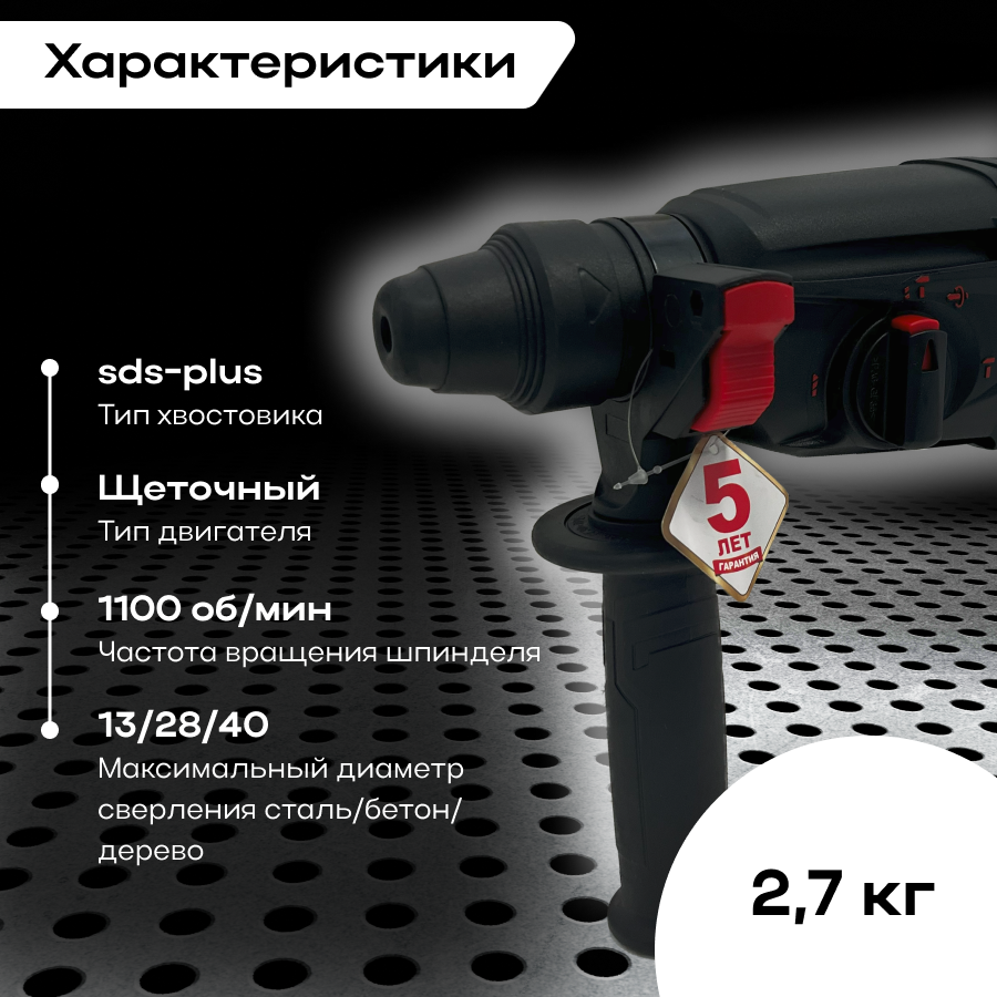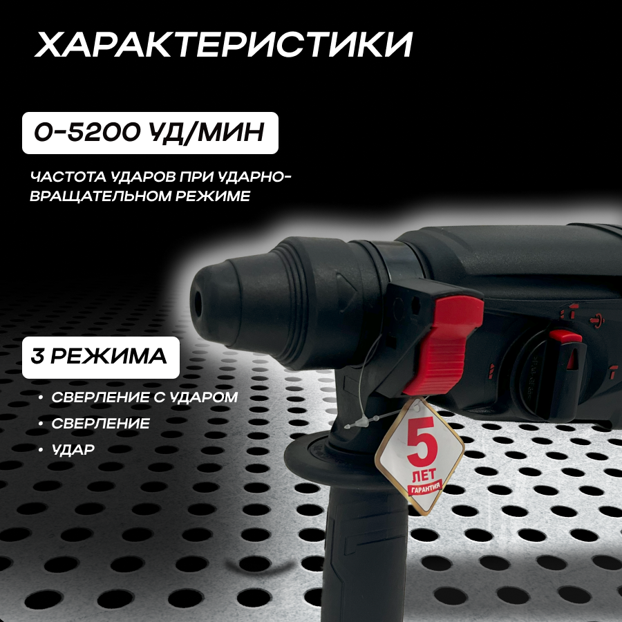 | Режимы работы | сверление с ударом / сверление (без удара) / долбление (отбойный молоток) |