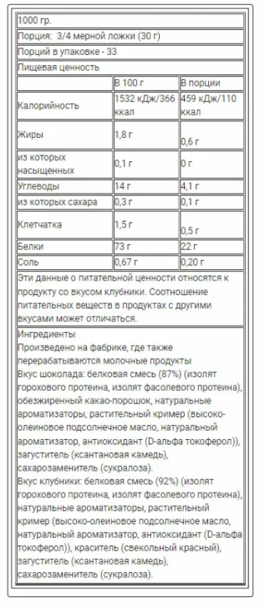 | Порция | 30 г |