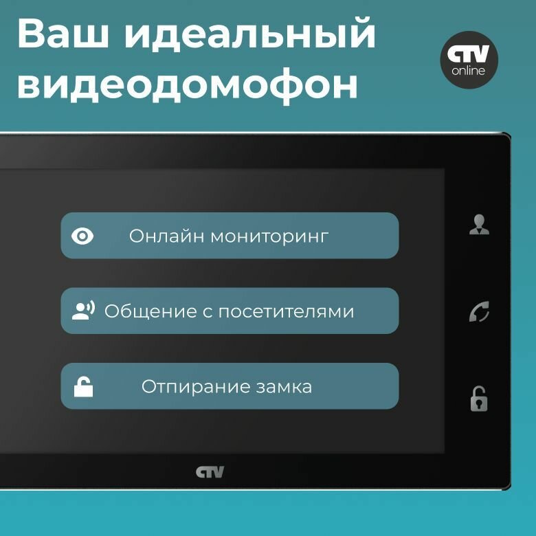 CTV-M4706 (Черный) Видеодомофон для квартиры или частного дома, с записью по детекции движения, автоответчик, сенсорный IPS экран 7", cовместим с подъездным домофоном через модуль сопряжения 15 500 ₽ Подробнее