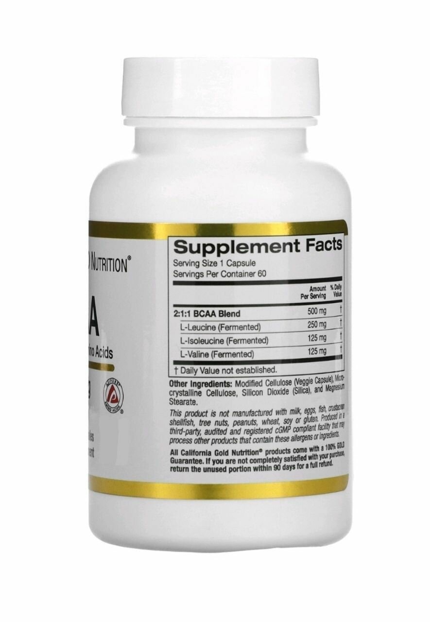 Аминокислоты Бсаа California Gold Nutrition BCAA 500 mg AjiPure 60 веган капсул