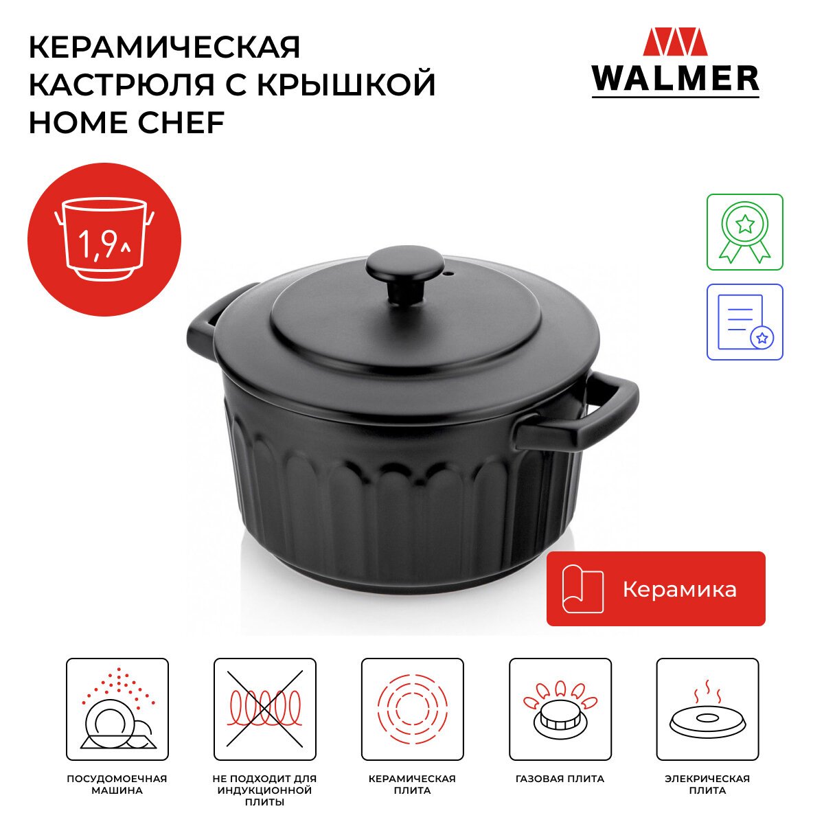 Кастрюли Кастрюля Walmer с крышкой HOME CHEF, 1900мл (W37000831)