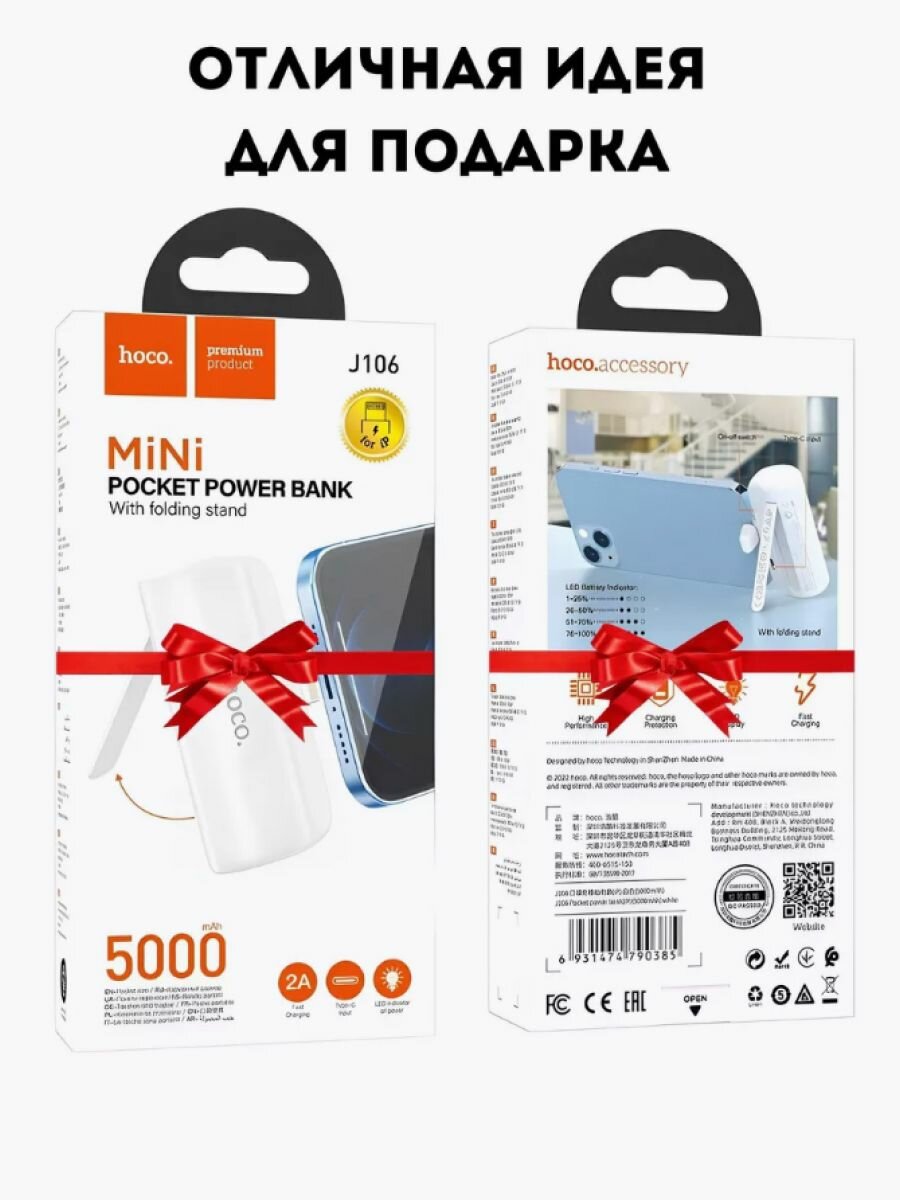 Внешний аккумулятор повербанк Power bank для iphone Lightning 5000mAh белый с подставкой J106 Mini 1 449 ₽ Подробнее