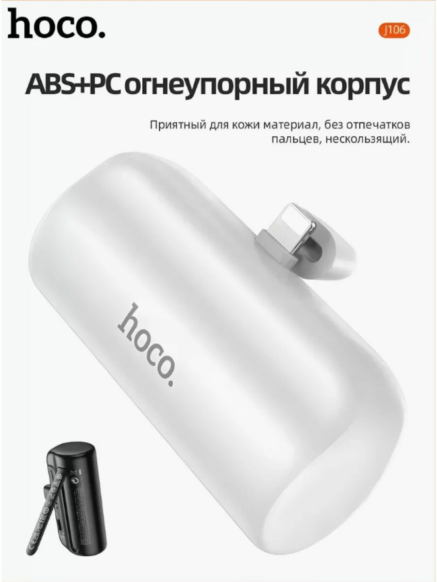 Powerbank Универсальный Доп. Аккумулятор 5000mAh, J106, HOCO, выход: Lightning (5V/2A), белый