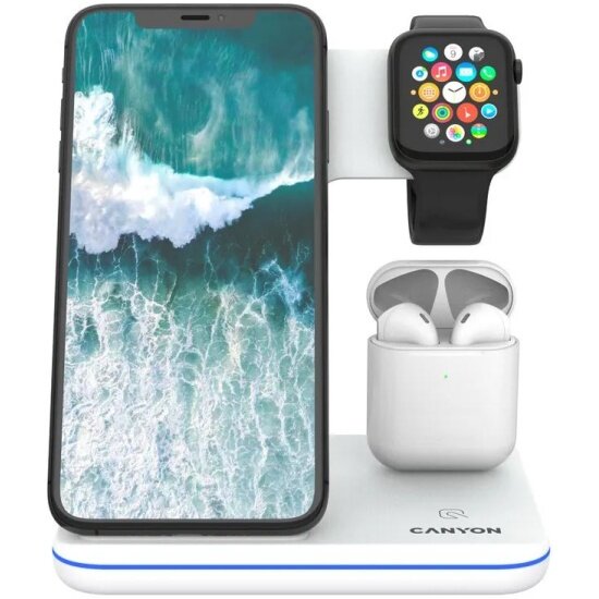 Зарядное устройство Беспроводная зарядная станция Canyon 3 в 1 CNS-WCS302W, белый