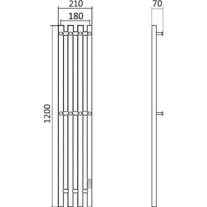 Полотенцесушитель электрический Маргроид профильный 1200мм 180мм правый скрытый монтаж черный матовый форма нестандартная