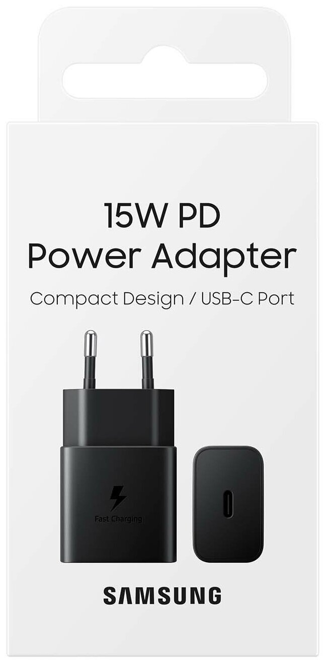 Сетевое зарядное устройство Samsung EP-T1510, USB-C, 15 Вт, с функцией быстрой зарядки, без кабеля, черный