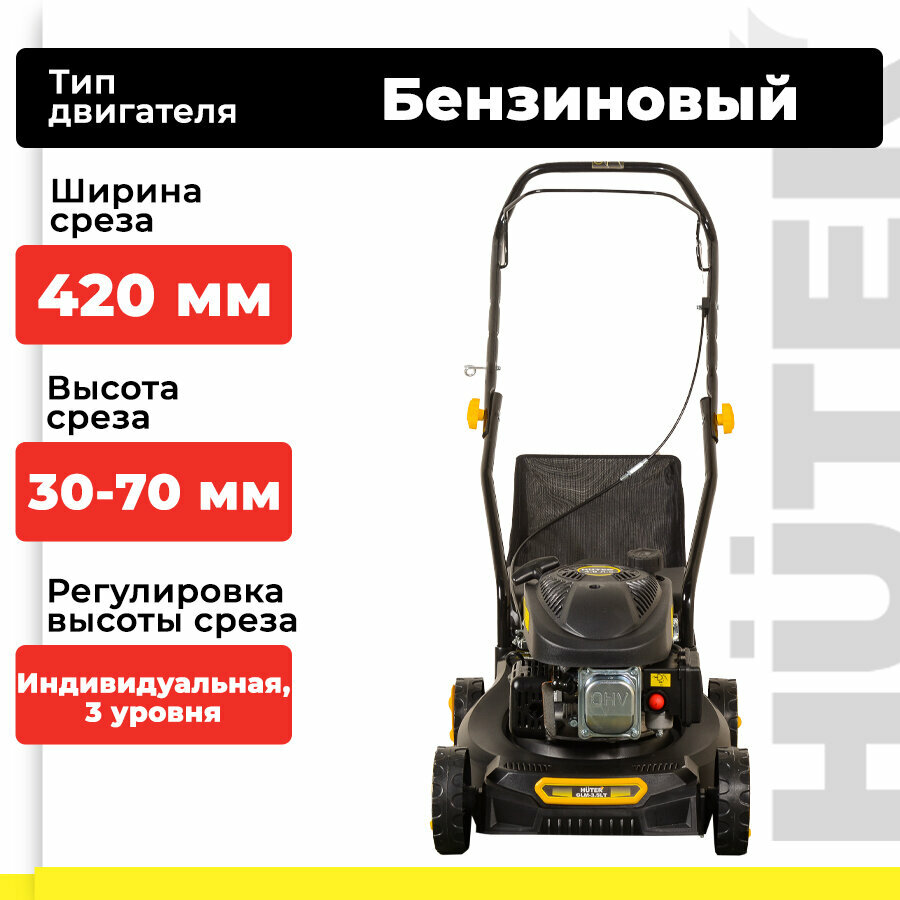 Газонокосилки Газонокосилка бензиновая HUTER GLM-3.5 LT (4 л.с., 2800-3200 об/мин, 45 л, от 30 мм до 70 мм, ширина - 420 мм)
