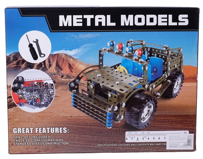 Конструкторы Конструктор металлический Военный джип , 283 детали