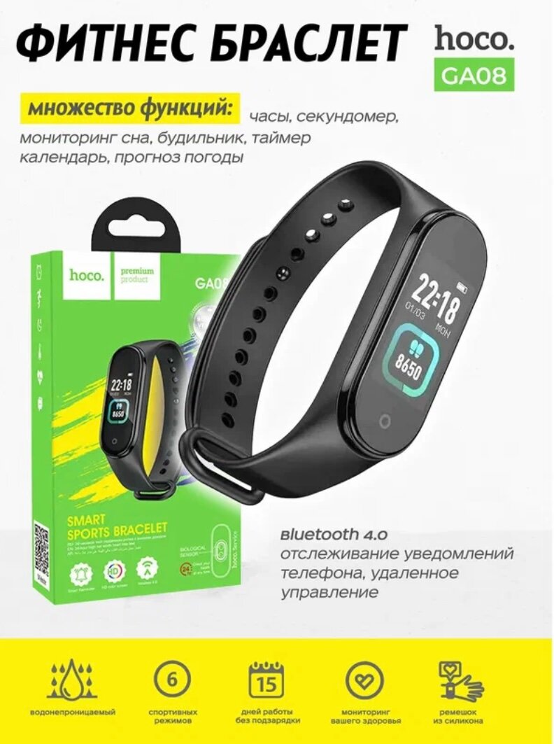 Смарт часы и фитнес браслеты Фитнес-браслет Hoco GA08 BT4.0/IP65 черный