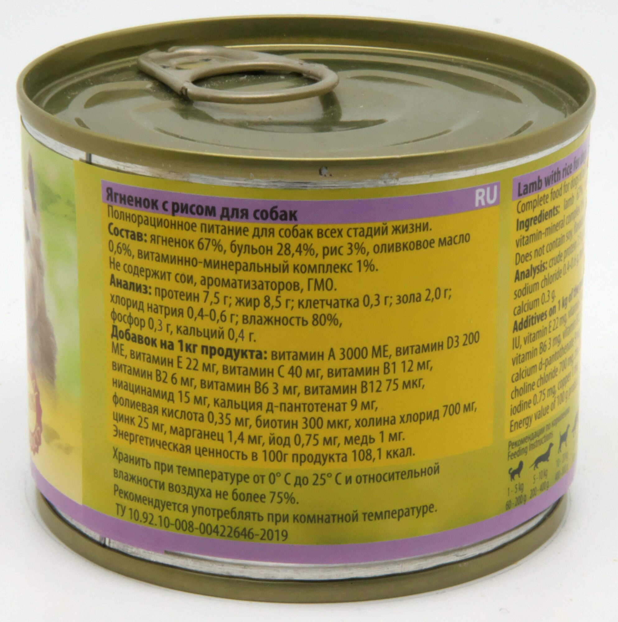 Консервы для собак Беркли 200г №2 ягненок с рисом (4 банки)