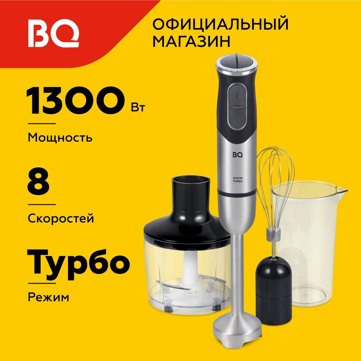Ручной блендер BQ HB501S Черно-серебристый / Мощность 900 Вт / Турбо режим 2 561 ₽ Подробнее