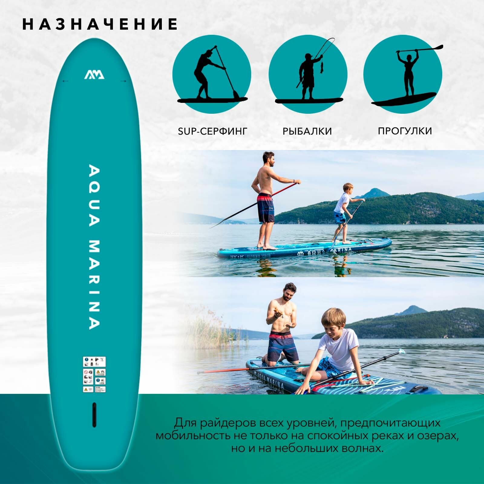Сапборд надувной семейная без весла Aqua Marina Super Trip Tandem 14'0 или 427х86х15 см бирюзовая насос плавник и сумка макс 230 кг (BT-24ST02) 61 000 ₽ Подробнее