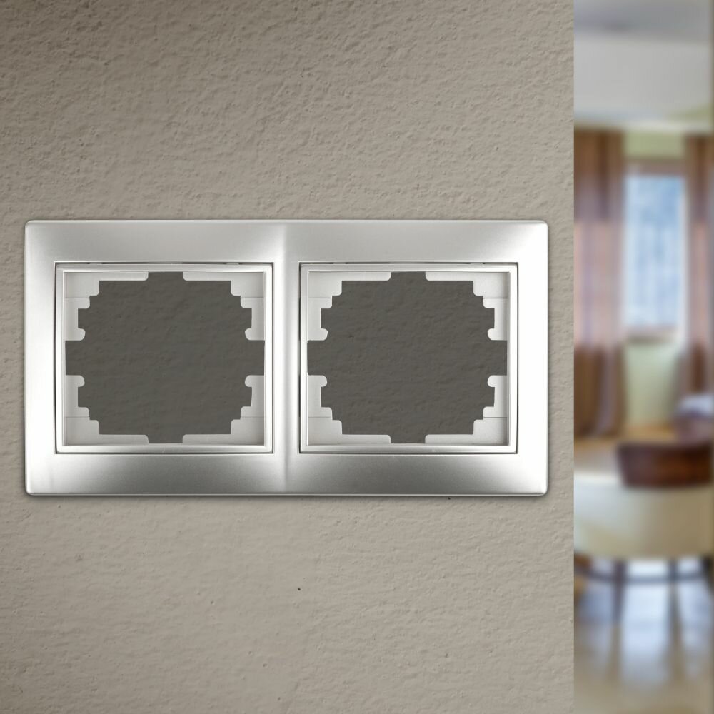 Рамки для розеток и выключателей Рамка для розеток и выключателей на 2 поста Intro Plano 1-502-03 алюминий