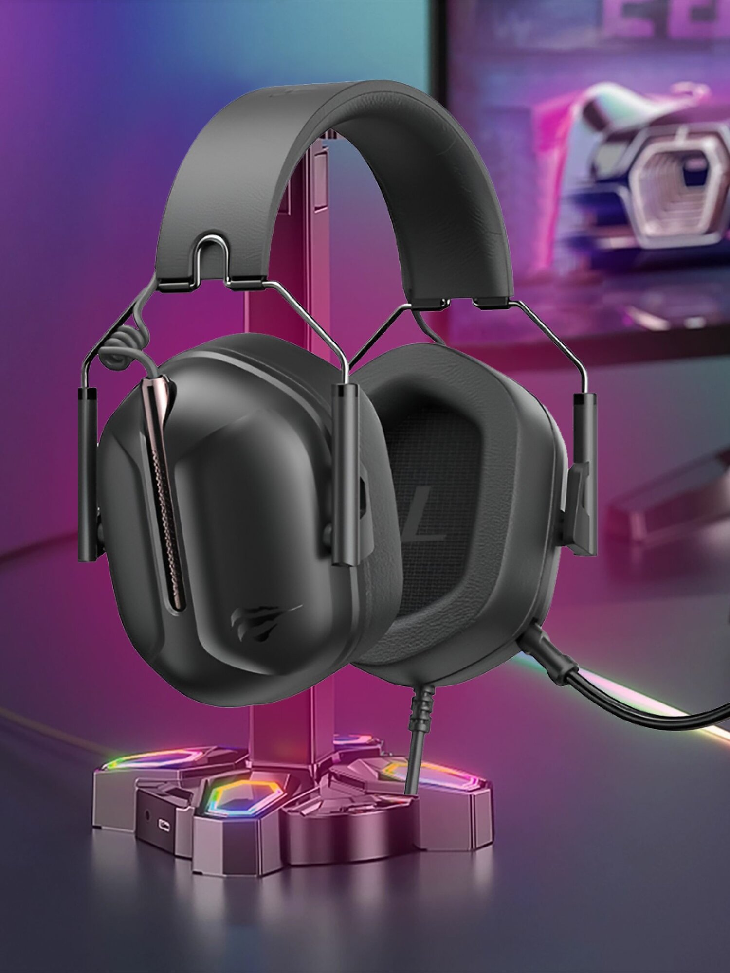 Проводные игровые (геймерские) наушники Havit H659d накладные для компьютера с микрофоном черные, RGB подсветка