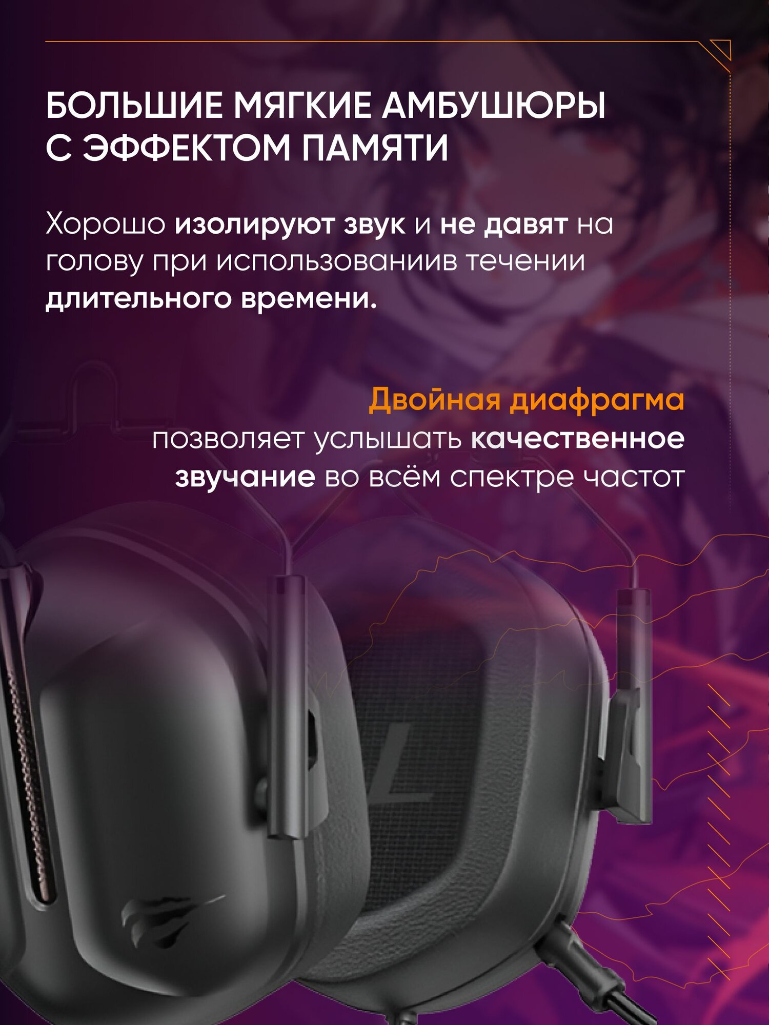 Наушники игровые, геймерские, проводные с микрофоном Havit H2008U 108B чёрный/красный/охра USB 4 291 ₽ Подробнее