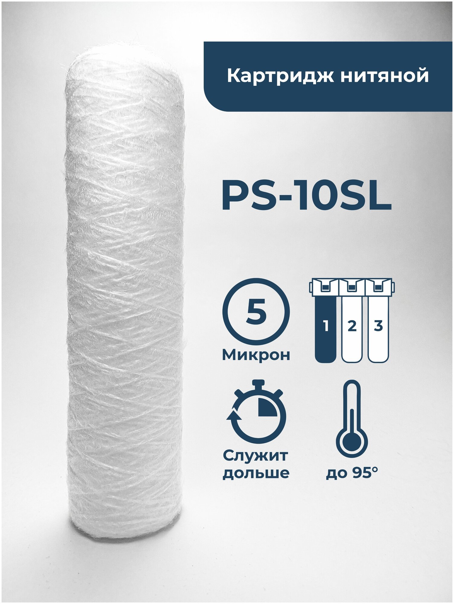Картридж из полипропиленовой нити PS-10SL 5 мкм (ВП-10М, B510, Профи) фильтр грубой очистки, нитяной шнур для Гейзер, Барьер, Аквафор, комплект 10 шт