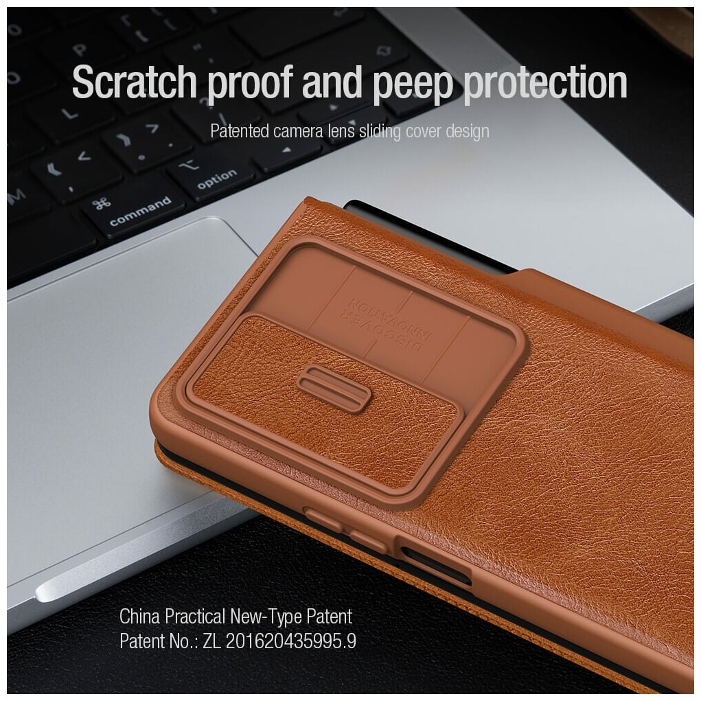 Чехлы для мобильных телефонов Кожаный чехол коричневого цвета от Nillkin для Samsung Galaxy Z Fold 4 5G, с держателем для S Pen, серия Qin Pro Leather с защитной шторкой для камеры