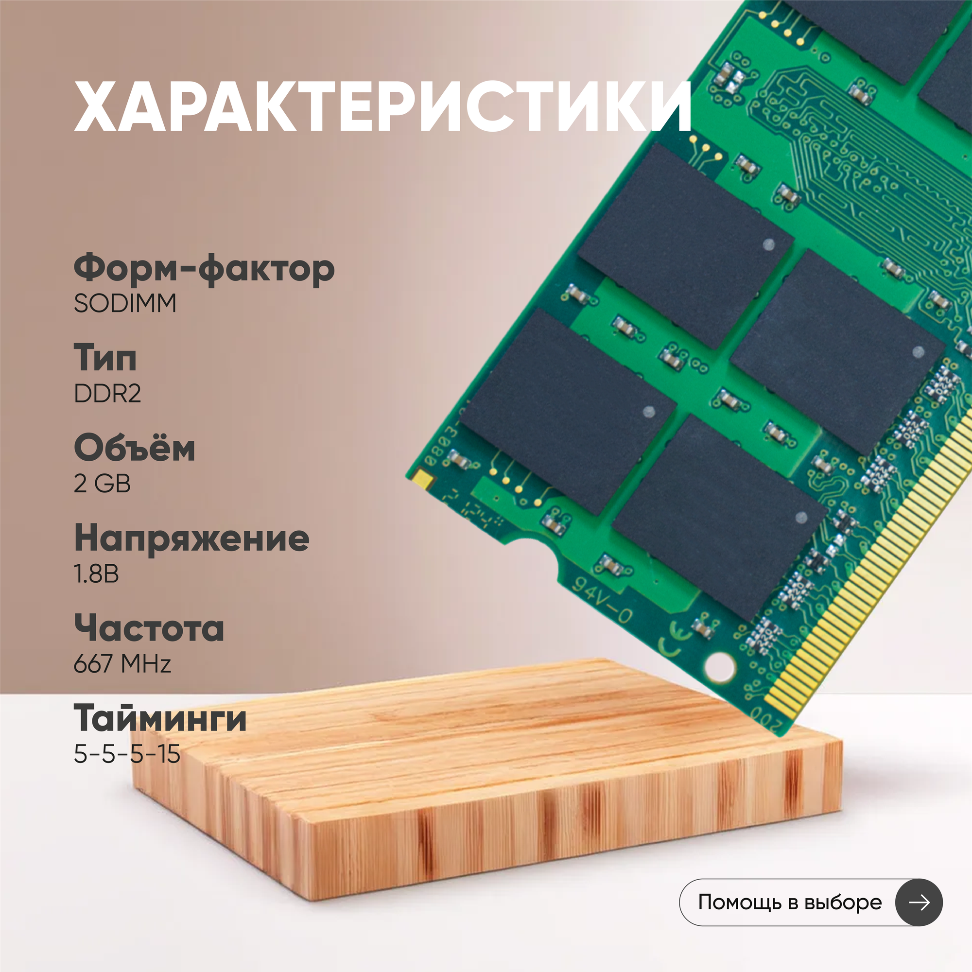Оперативная память Модуль памяти Kingston SODIMM DDR2, 2ГБ, 667МГц, PC2-5300, CL5 5-5-5-15