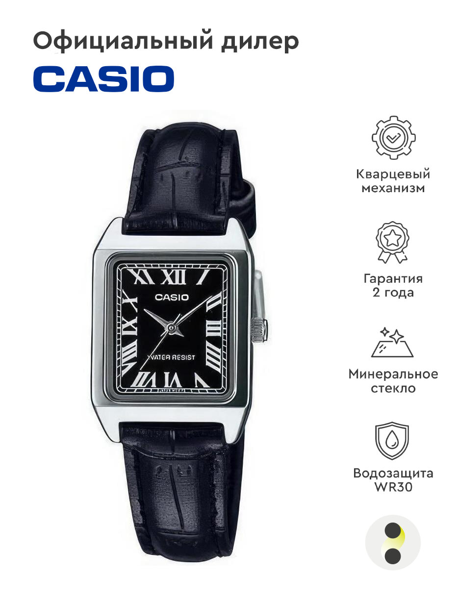 LTP-V007D-1B Casio наручные часы кварцевые WR30 (3 атм) женские черный минеральное стекло