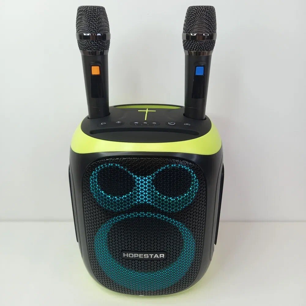 Портативная Колонка Hopestar Party One Black с двумя беспроводными микрофонами, Чёрная