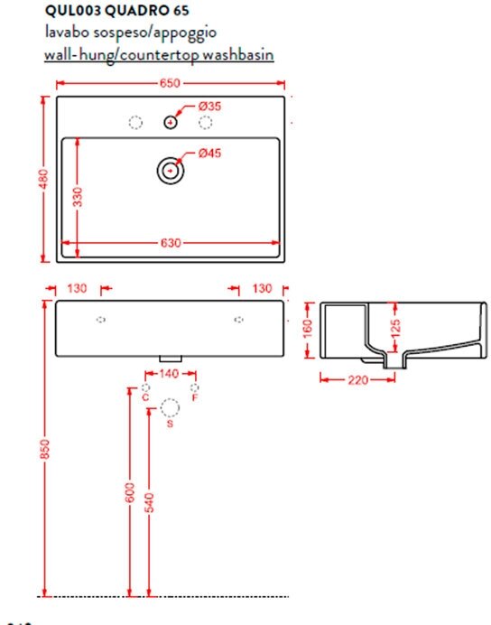 Раковина Artceram QUADRO QUL003 01 00 45 630 ₽ Подробнее