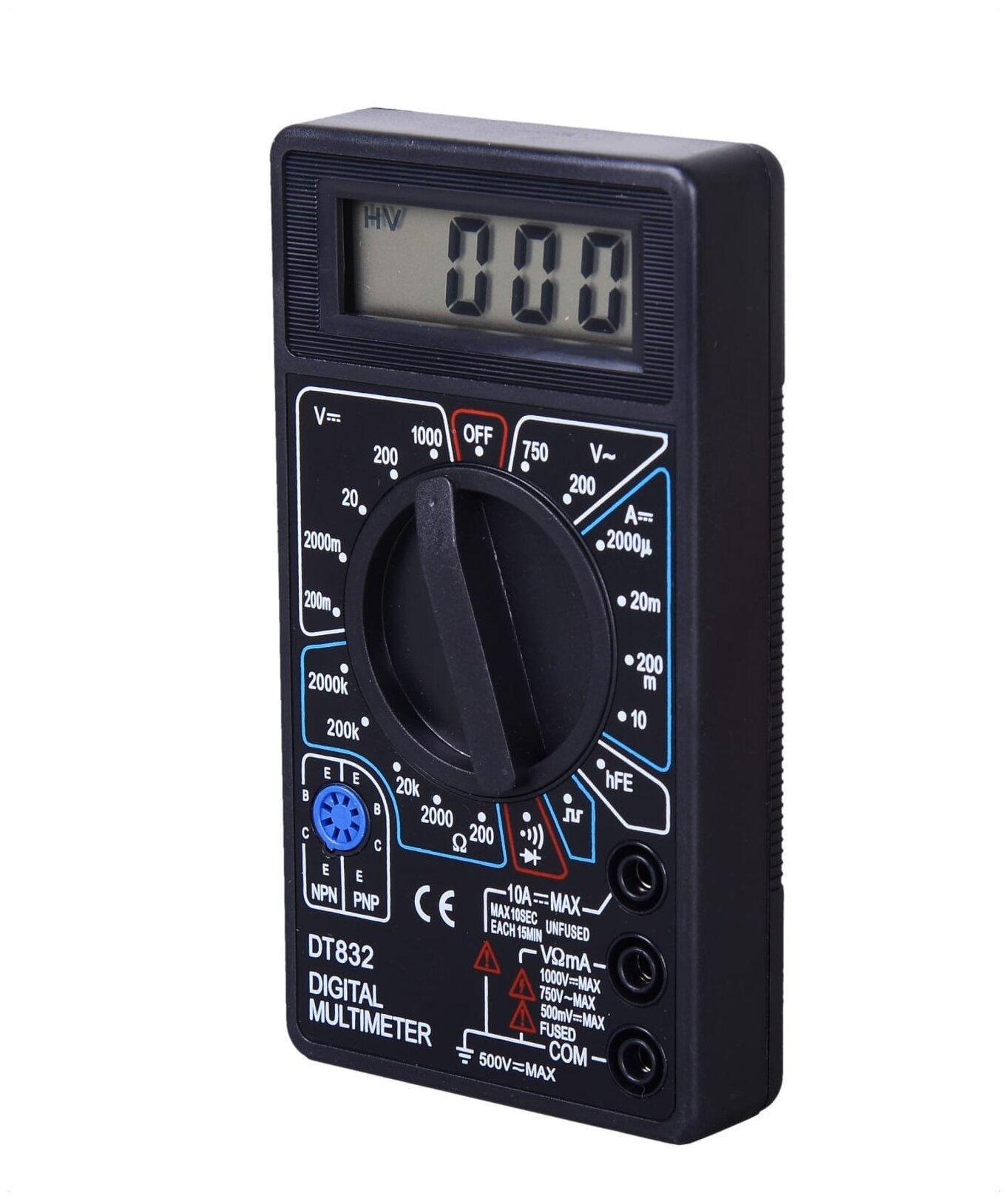 Мультиметр DT 832 широко используется как в домашнем хозяйстве и мастерских, так и в лабораториях. Он предназначен для измерений постоянного/переменного напряжения и тока, сопротивления, проверки диодов, транзисторов и звуковой прозвонки.