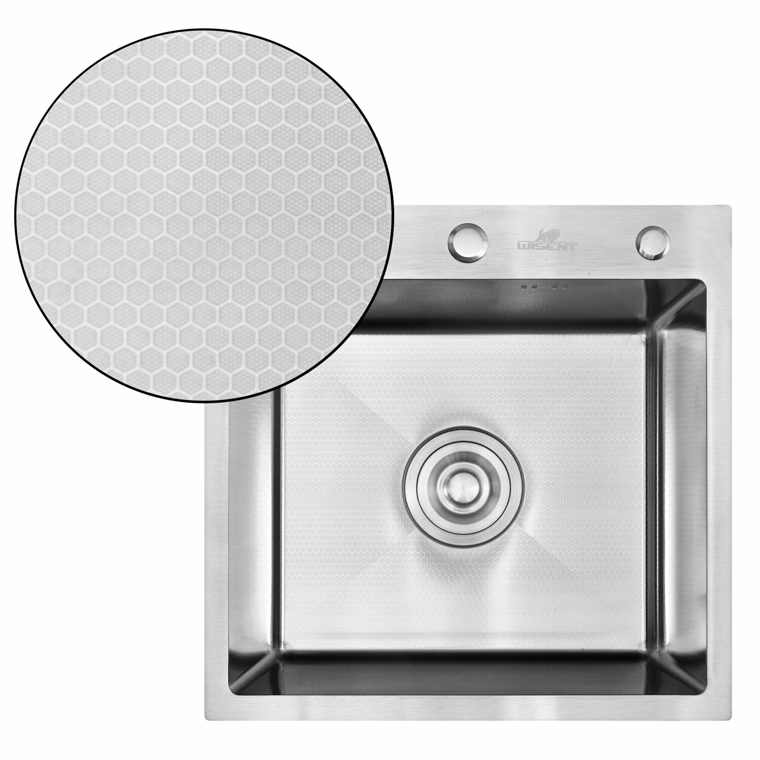 Комплект кухонная мойка из нержавеющей стали WISENT WX 5050 (50х50см) с коландером и дозатором.