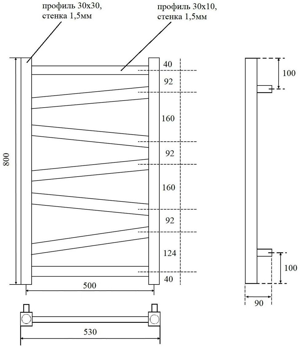 Полотенцесушитель водяной Lengitown Вега П7 500x800 хром