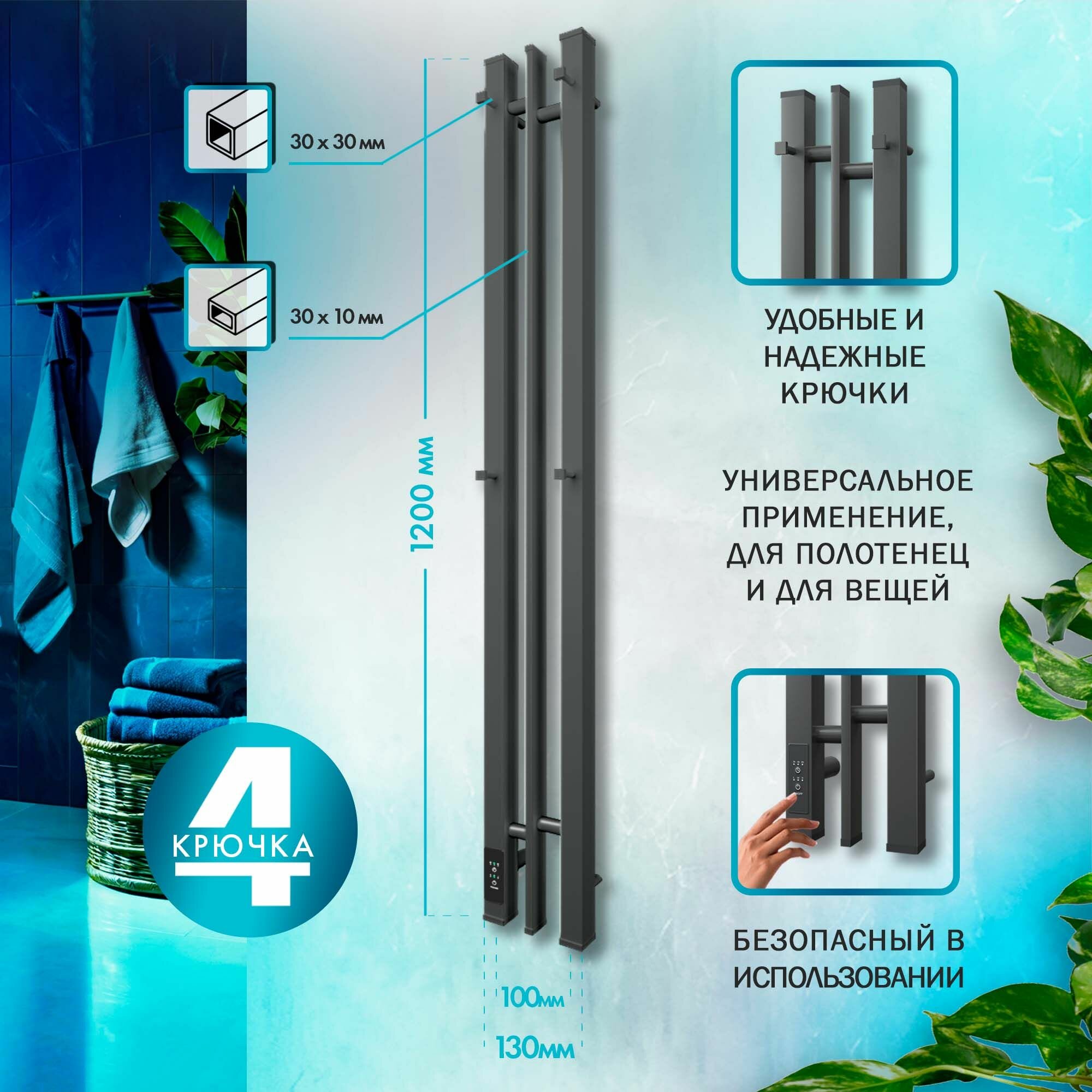 Полотенцесушители Полотенцесушитель электрический Point Фрея PN20712GB П2 100x1200 диммер слева, графит блеск
