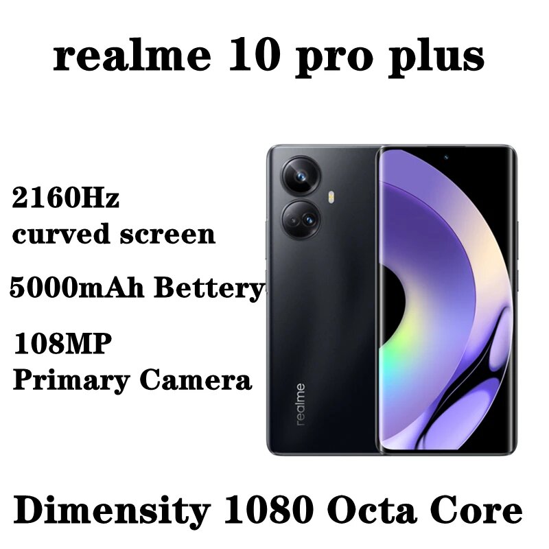 Мобильные телефоны Смартфон realme 10 pro plus, 6,7 дюйма, FHD +, 8 ядер, NFC, 1080 МП, 5000 мАч