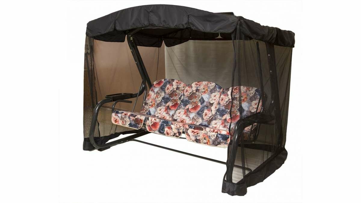 Качели садовые 3-х местные Мебельторг Мастак Премиум Каркас антрацит/Разноцветный рис.цветы