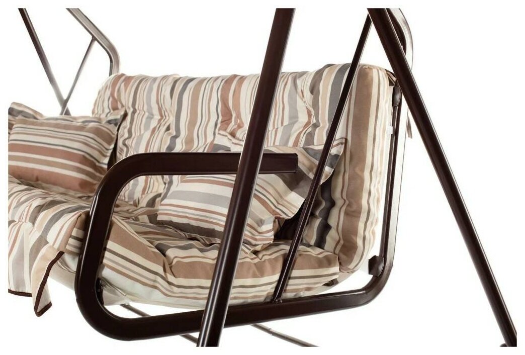 Качели садовые 3-х местные Ольса Бари каркас темно-коричневый, ткань белая с лимонами с1100