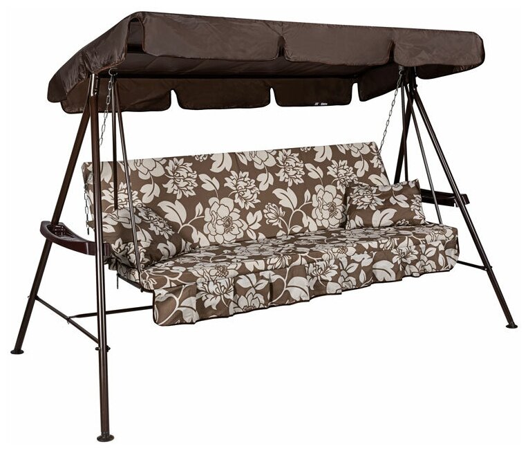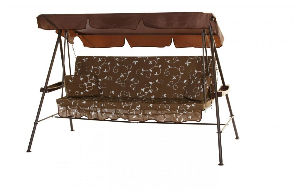Садовая качель Качели садовые 3-х местные Стандарт-2, каркас коричневый, м/э коричневый,белый рис.ветки