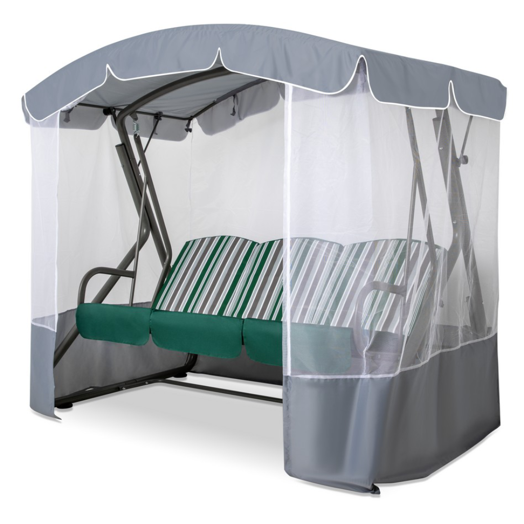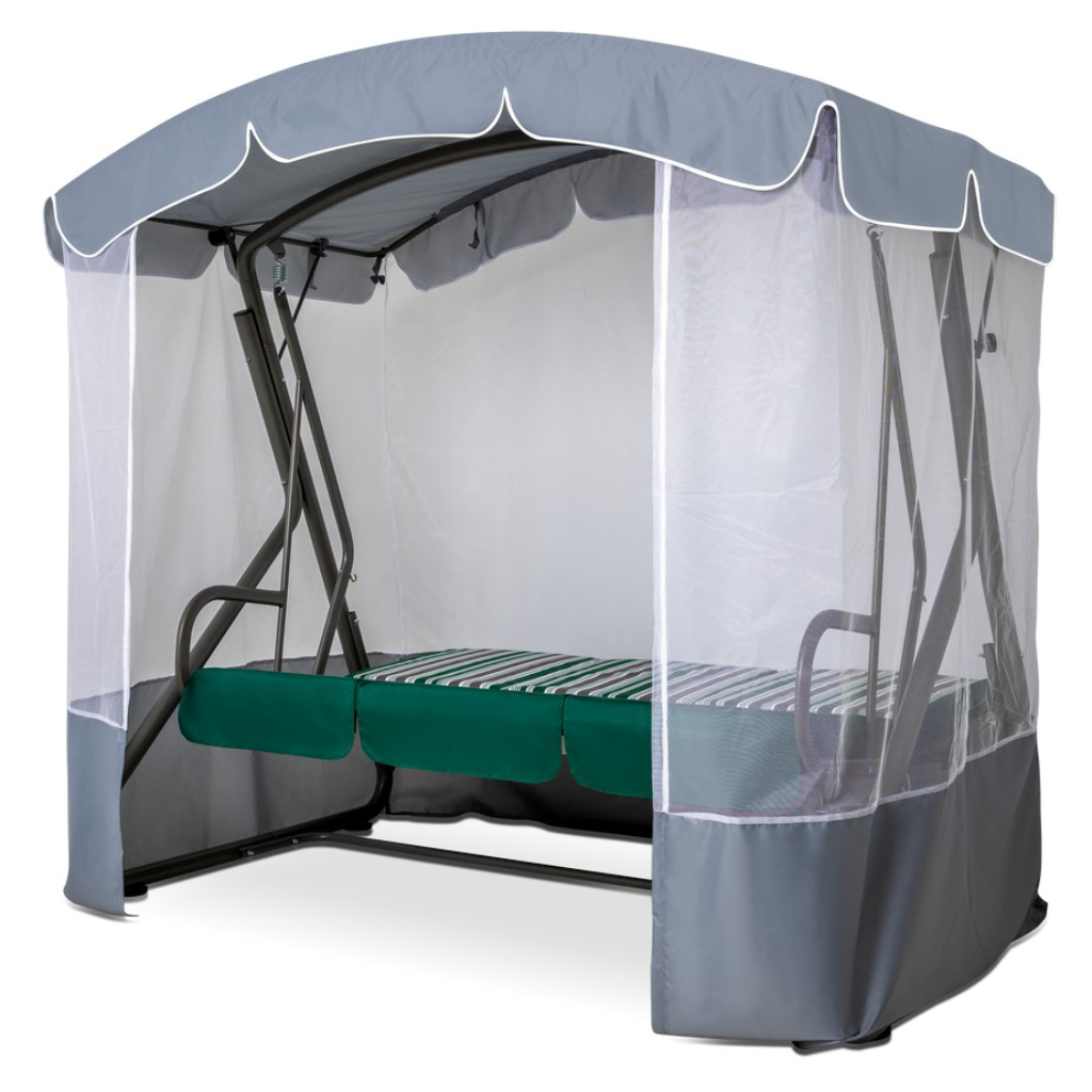 Садовые качели оазис премиум для дачи уличные 3-местные подвесные с тентом и москитной сеткой серый