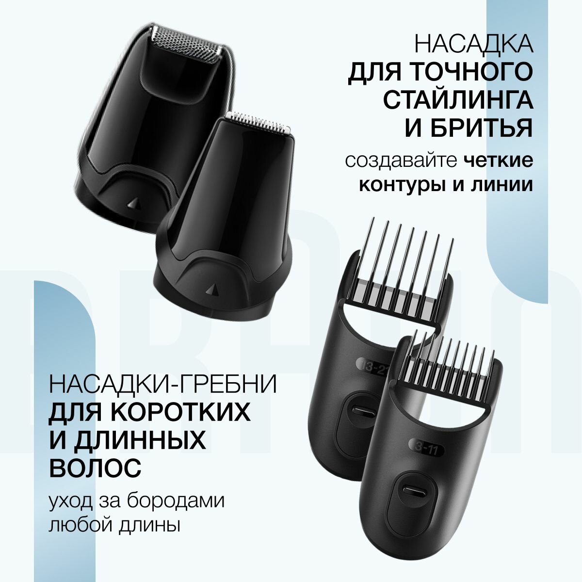 | Насадки | нож для стрижки / сеточная бритва / бритва для тела / универсальный гребень (2 шт) |