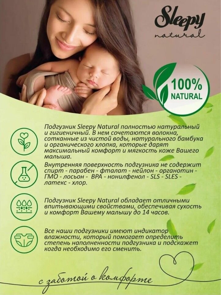 ЭКО Подгузники детские Sleepy Natural размер 1 (2-5кг.) 80 шт.