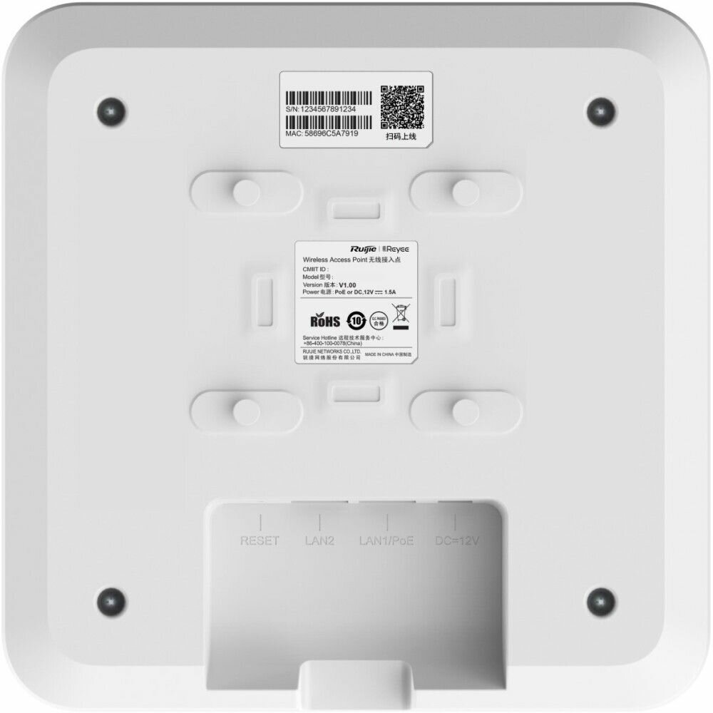 Точка доступа Ruijie Reyee AX3200 Wi-Fi 6 Multi-Gigabit Ceiling Mount AP1 2.5Gbps RJ45 port, 1 Gigabit RJ45 port, Built-in antennas, dual-band