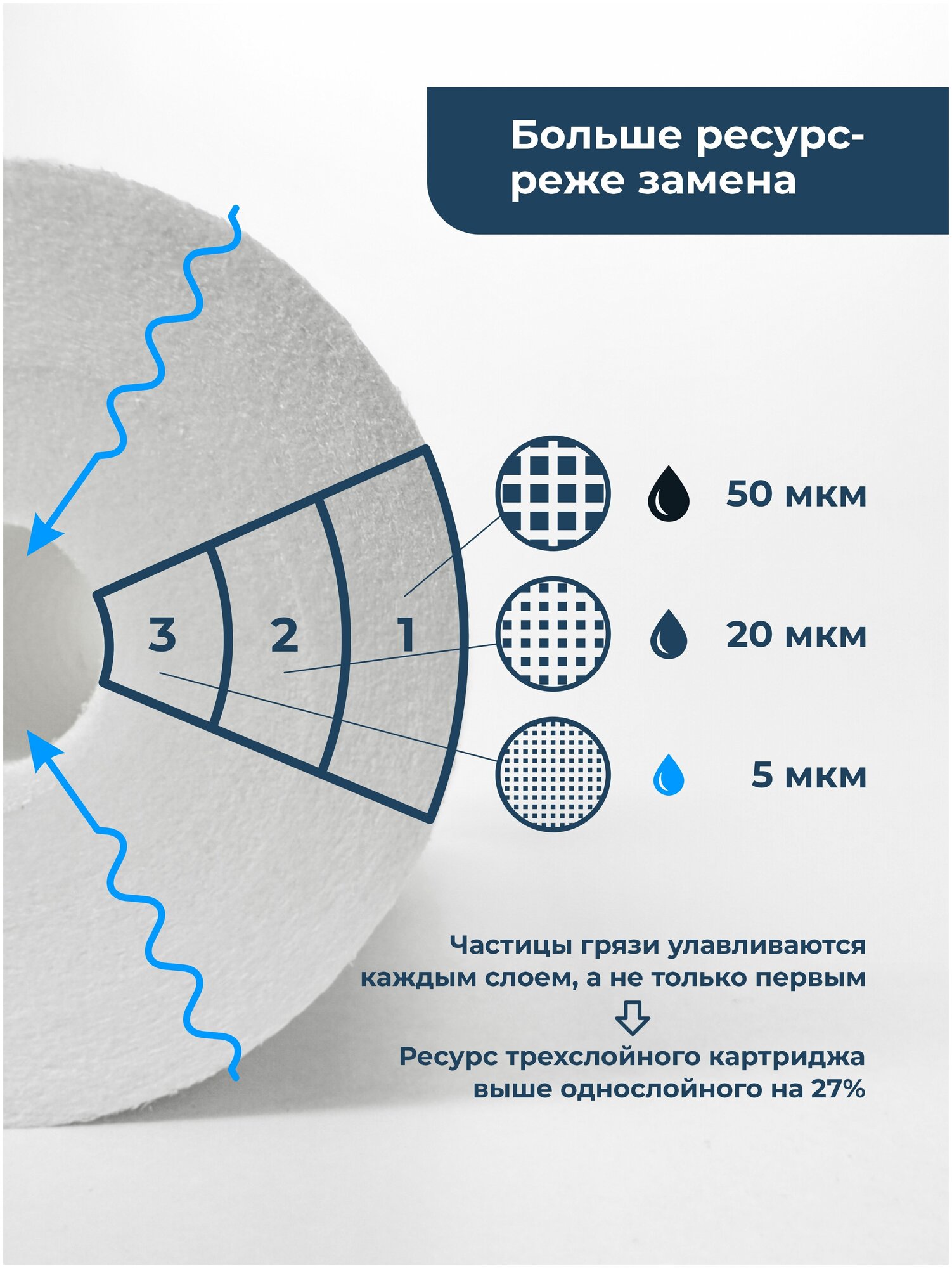 Картридж для фильтра из полипропилена PP-20BB 5 мкм для механической очистки холодной и горячей воды, комплект из 3 штук