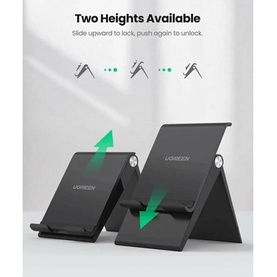 Подсктавка регулируемая UGREEN LP247 (80903) Adjustable Portable Stand для телефонов и планшетов. Цвет: черный