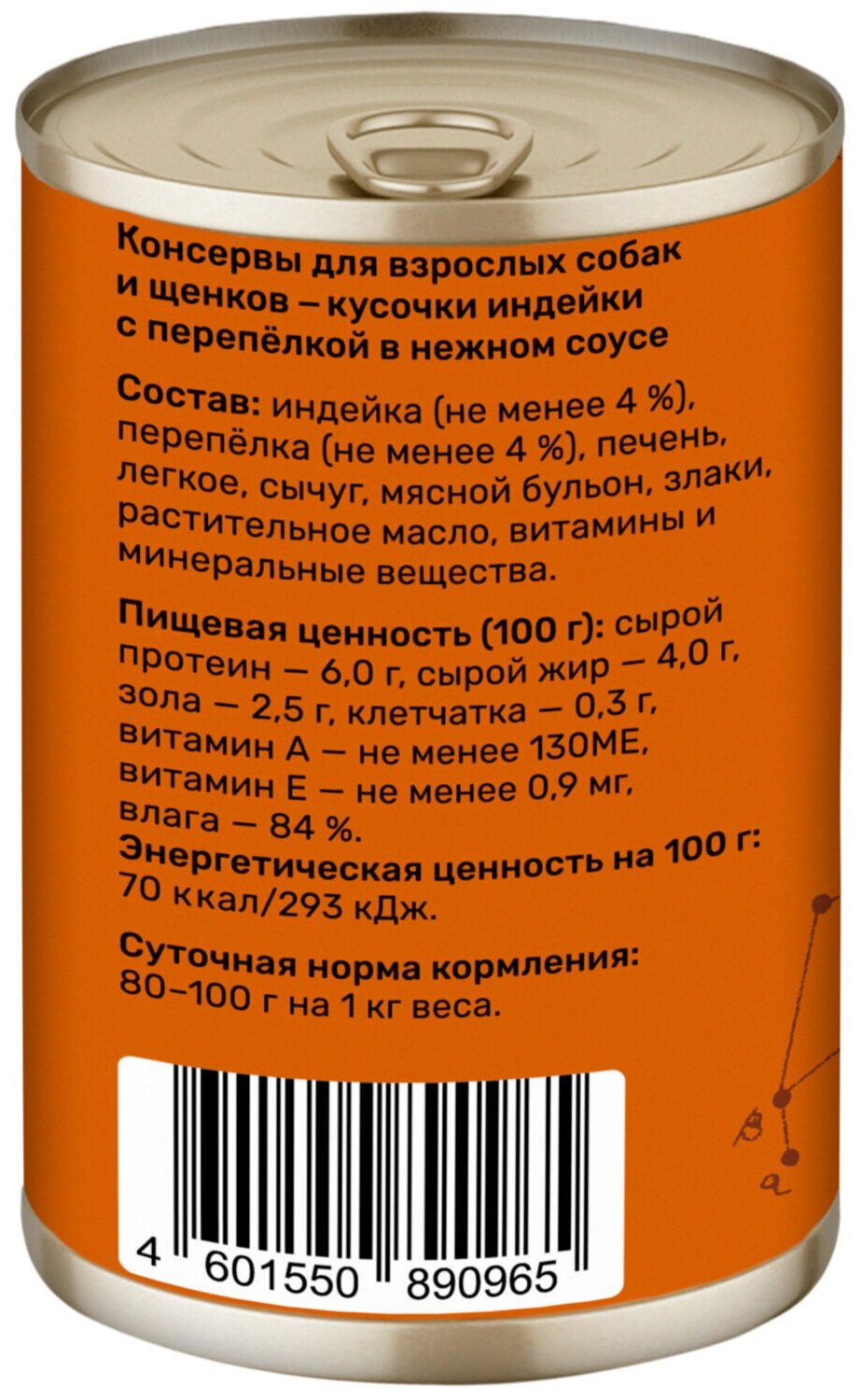 Smart Dog консервы Консервы для взрослых собак и щенков кусочки индейки с перепелкой в нежном соусе 22ел16 43744 0,85 кг 43744 (2 шт)