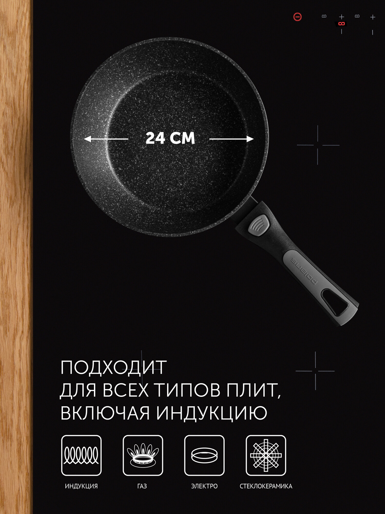 Сковорода Polaris Graphit 24F, 24см, без крышки, темно-серый 2 595 ₽ Подробнее