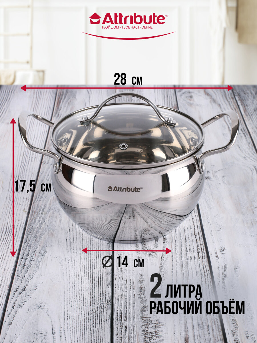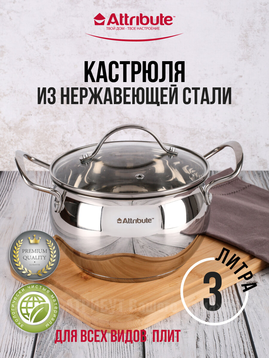 Кастрюли Кастрюля с крышкой Attribute Optima 3л (aso118) .