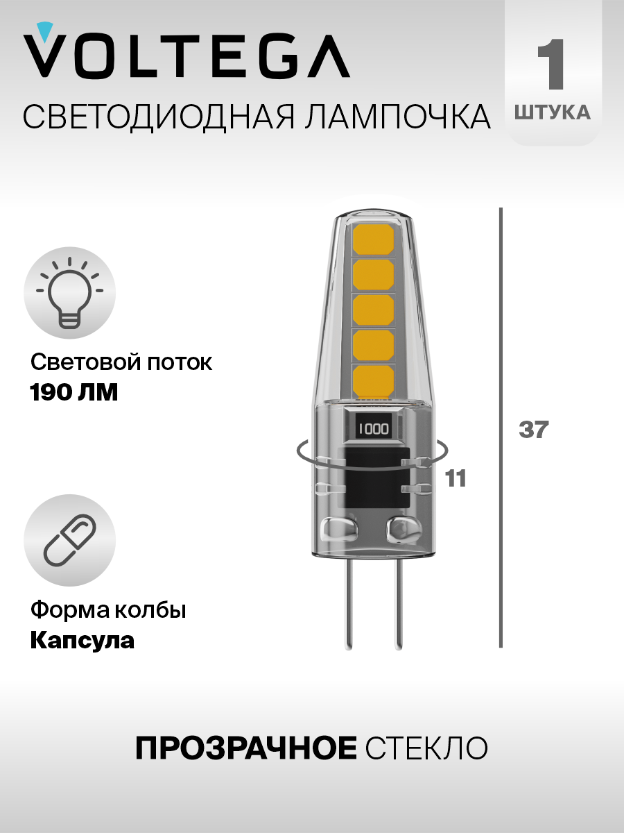 Лампочка светодиодная G4 форма капсульная 2W теплый свет Voltega Simple Capsule 2800K 1 штука 165 ₽ Подробнее
