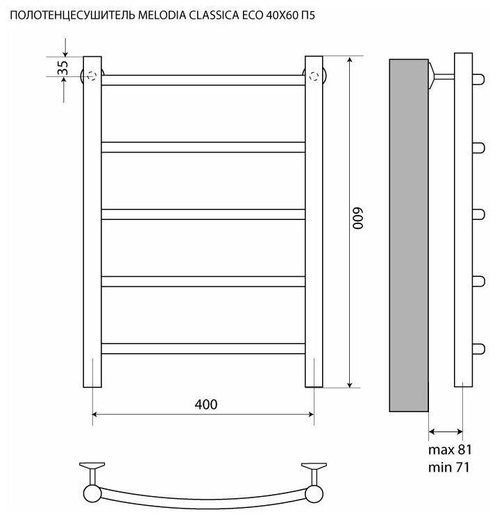 Полотенцесушитель Полотенцесушитель водяной Melodia della vita Classica Eco 40*60 Лесенка П5