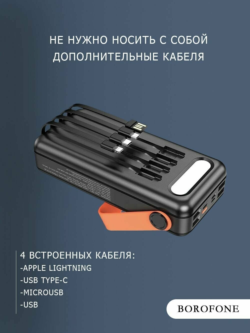 Повербанк 30000 МАЧ с солнечной батарееей с фонариком 4 провода 12 в 1/ borofone dbt17 30000 mah, Внешний аккумулятор