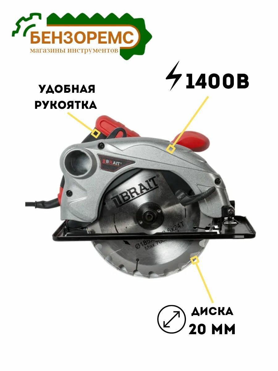 Пила циркулярная BRAIT BCS185/1400 (1400Вт, 185мм, 5500об/мин, диаметр посадочного диска 20мм