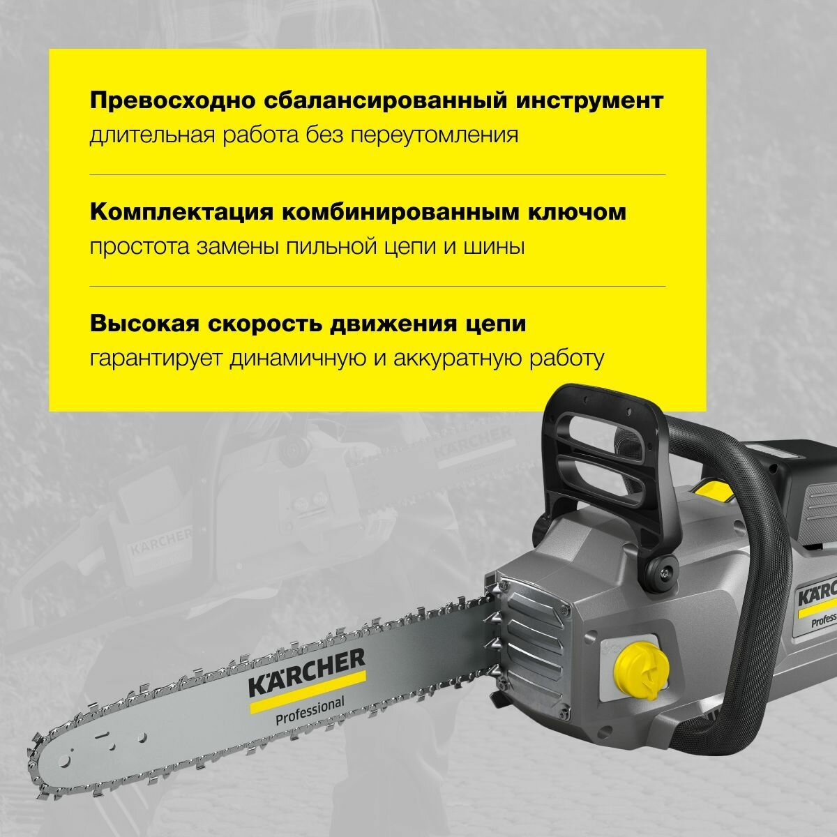 Пилы Профессиональная аккумуляторная цепная пила Karcher CS 400/36 Bp Pack 1.042-505.0 с направляющей длиной 40 см, автоматическим смазыванием цепи и аккумулятором, до 30 минут работы от одного заряда